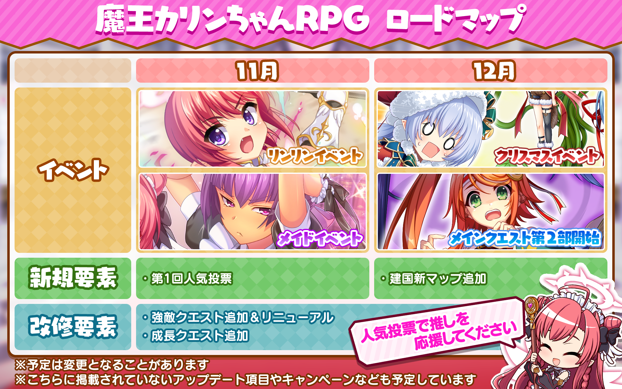 人気投票と連動した「メイド衣装」に身を包んだキャラが登場するイベントを予定しています。