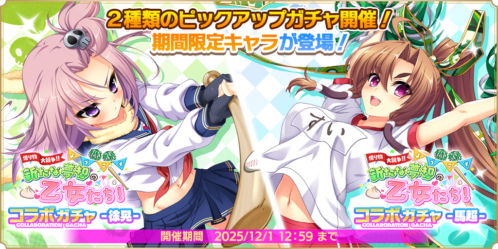 ▼チケット限定:『コラボガチャ -徐晃-』『コラボガチャ -馬超-』