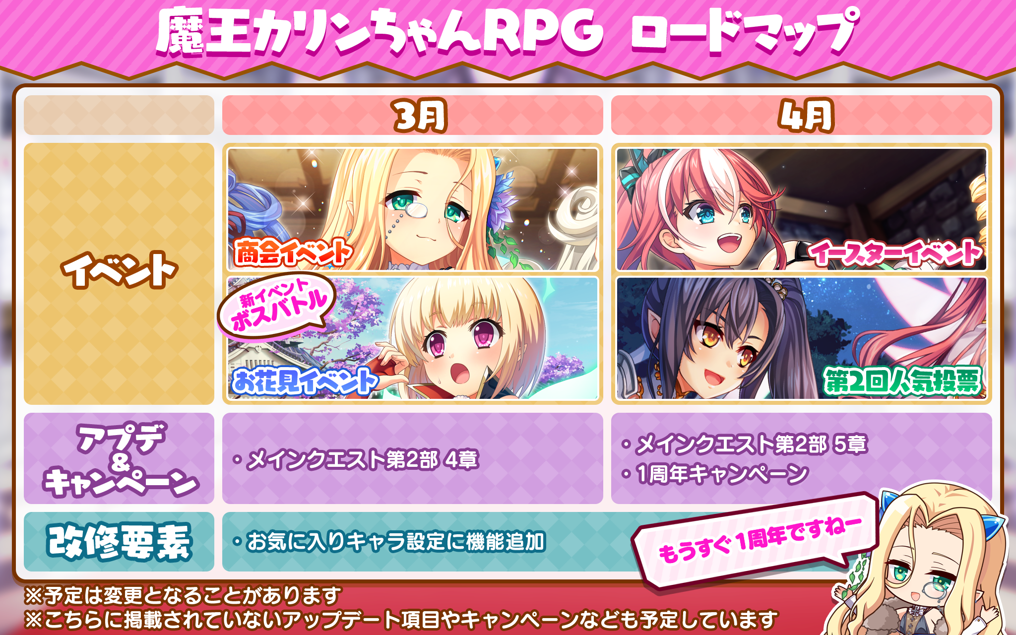 3月・4月共にメインストーリーの追加を予定しております。